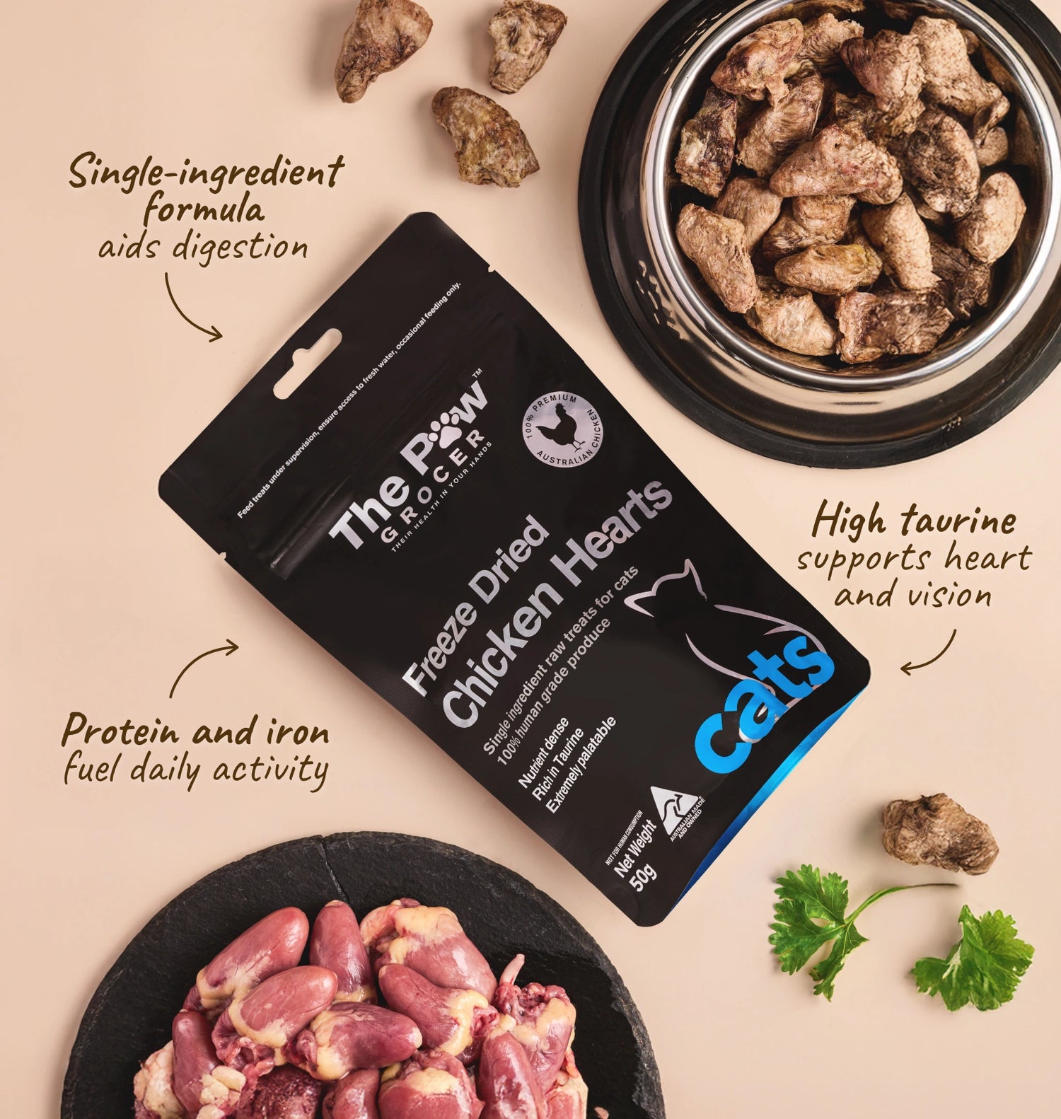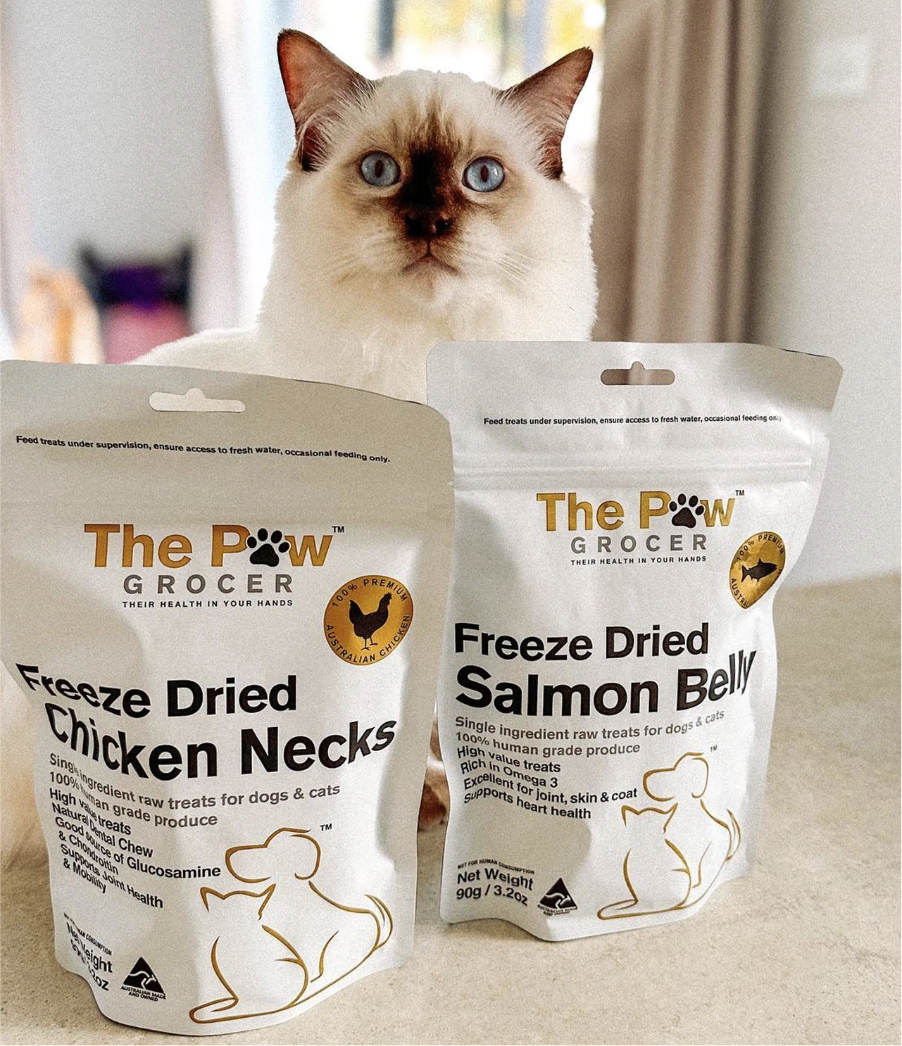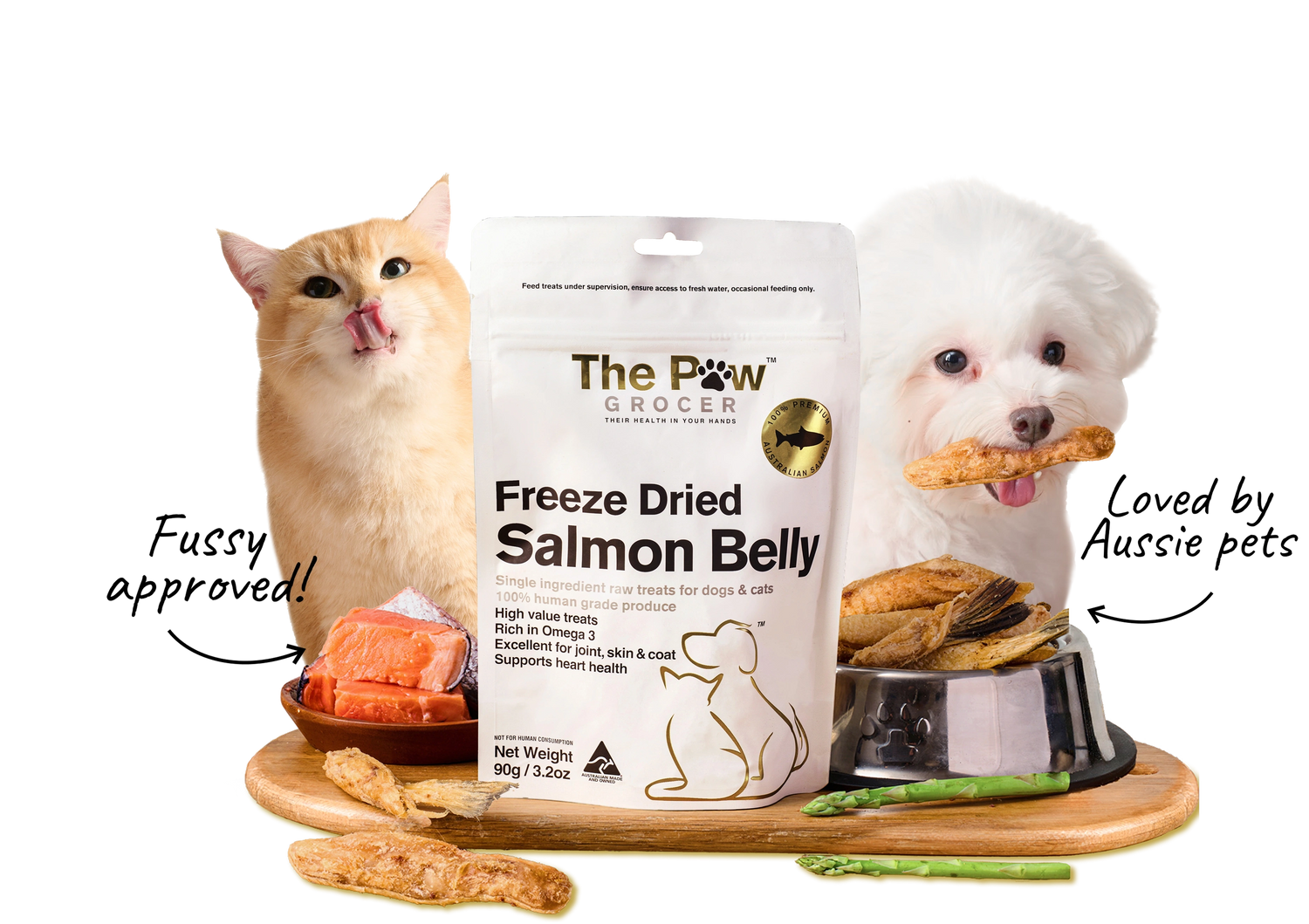 All of our protein treats are sourced in Australia and freeze dried in the pristine Tasmanian countryside. Simply put, the treats are human grade, natural and functional. Our treats are entirely free of any other ingredients. NO FILLERS, GRAIN OR GLUTEN, NO FLAVOURS OR COLOURS, NO PRESERVATIVES.