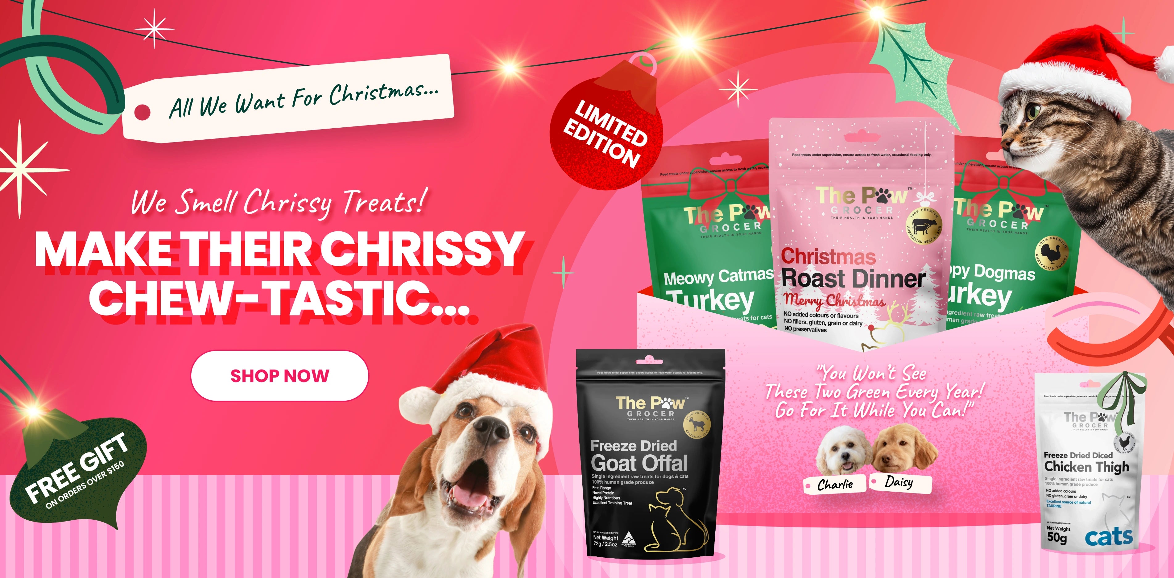 Jenny — devoted dog mum to Daisy the Labradoodle and Charlie the Cavoodle, could never find treats good enough for her two best friends. So, she started making her own. Single ingredient. No additives. 100% Australian. And that’s how The Paw Grocer was born...