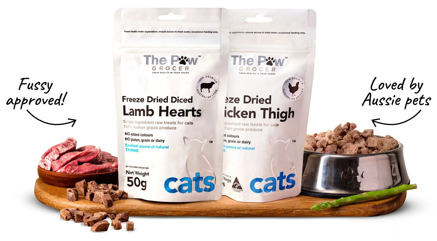 - The Paw Grocer's chicken thighs are sourced from Australian farms, and freeze dried in Tasmania.